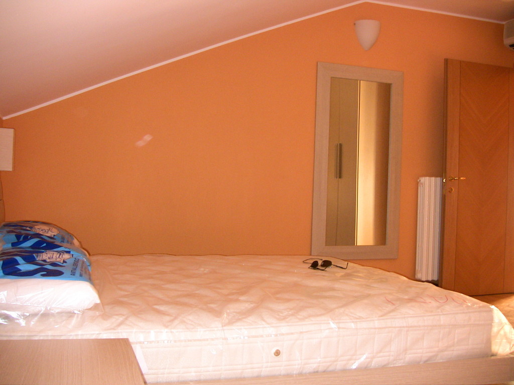 Luminosissima mansarda arredata con due stanze matrimoniali e un bagno. Ampio balcone, cuncina a vista, cantina e box.